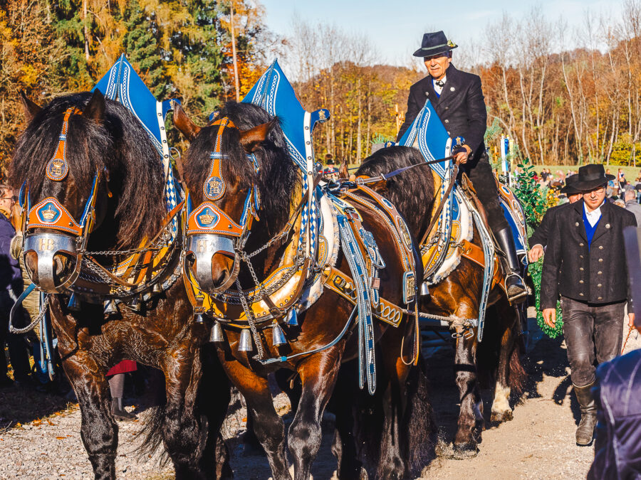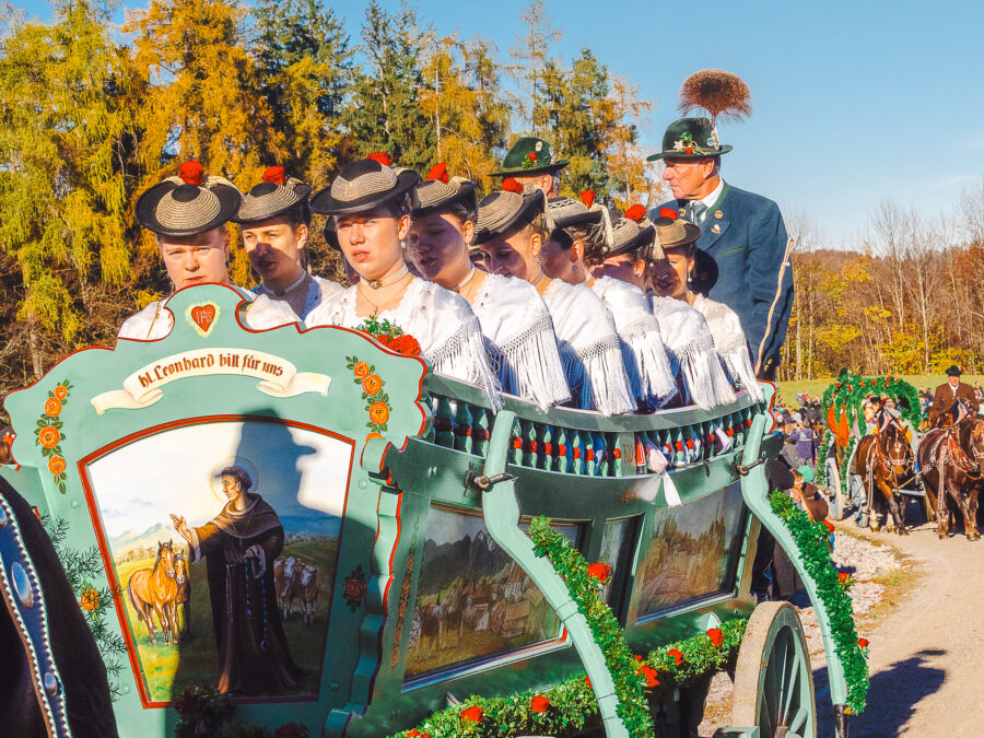 Bei wunderschönen Wetter fand in Bad Tölz im Loisachtal der diesjährige Leonhardiritt statt. Über 70 geschmückte Pferdekutschen fuhren durch die Ortschaft hinauf zum Kalvarienberg. Dabei erhielten die Gespanne ihren Segen und alle Beteiligten bedankten sich für ein gutes Jahr ohne großen Schäden an Hof und Vieh. Wunderschöne Pferdegespanne und ebensolch wunderschöne Trachten gab es wie jedes Jahr zu bestaunen. Und all das zieht natürlich die Menschenmassen an. Am Schluß wird dann am Kalvarienberg geschnapselt, gelacht und so manche Freundschaft geschlossen!