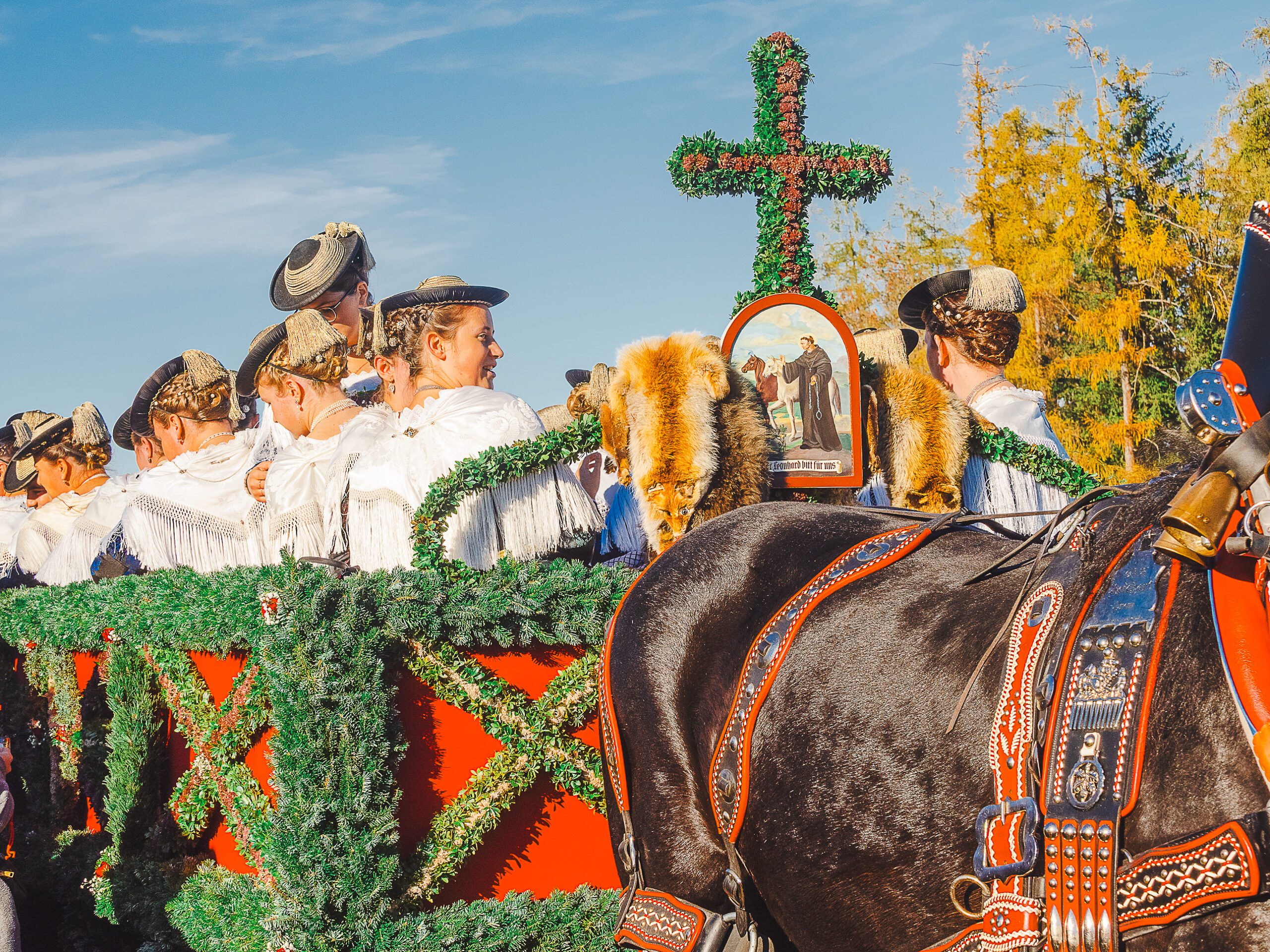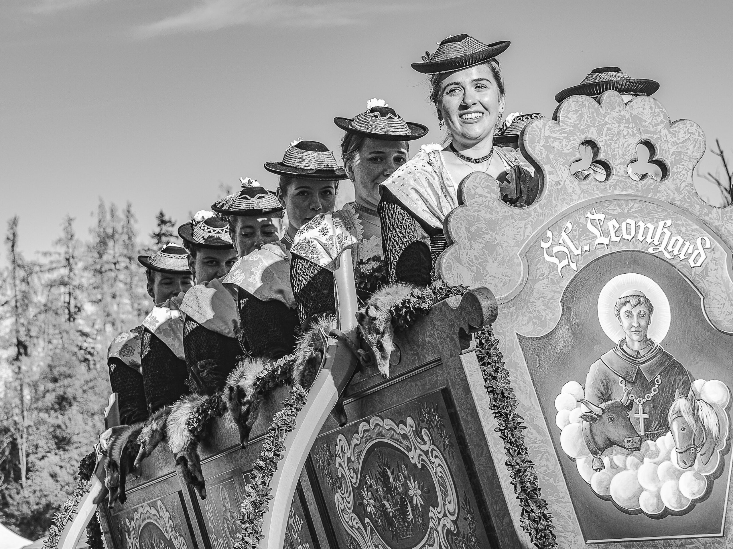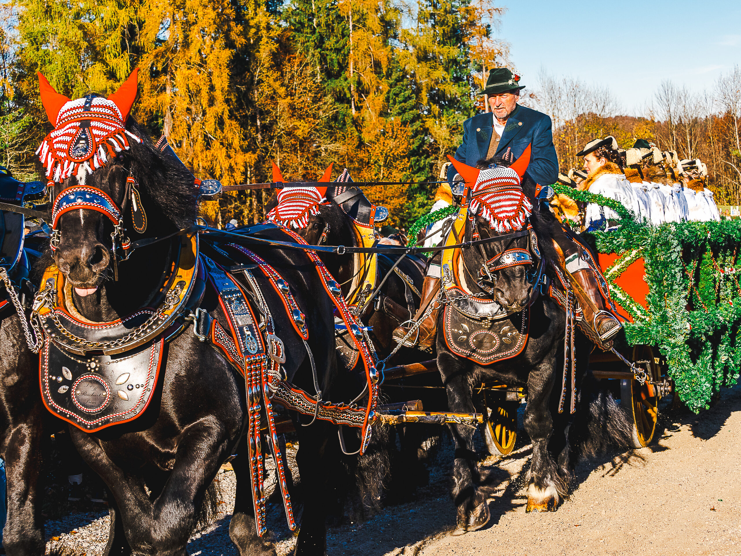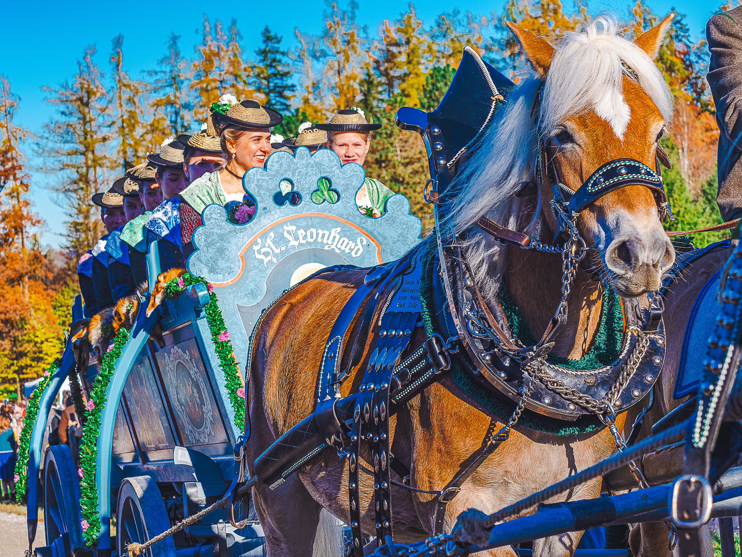 Bei wunderschönen Wetter fand in Bad Tölz im Loisachtal der diesjährige Leonhardiritt statt. Über 70 geschmückte Pferdekutschen fuhren durch die Ortschaft hinauf zum Kalvarienberg. Dabei erhielten die Gespanne ihren Segen und alle Beteiligten bedankten sich für ein gutes Jahr ohne großen Schäden an Hof und Vieh. Wunderschöne Pferdegespanne und ebensolch wunderschöne Trachten gab es wie jedes Jahr zu bestaunen. Und all das zieht natürlich die Menschenmassen an. Am Schluß wird dann am Kalvarienberg geschnapselt, gelacht und so manche Freundschaft geschlossen!